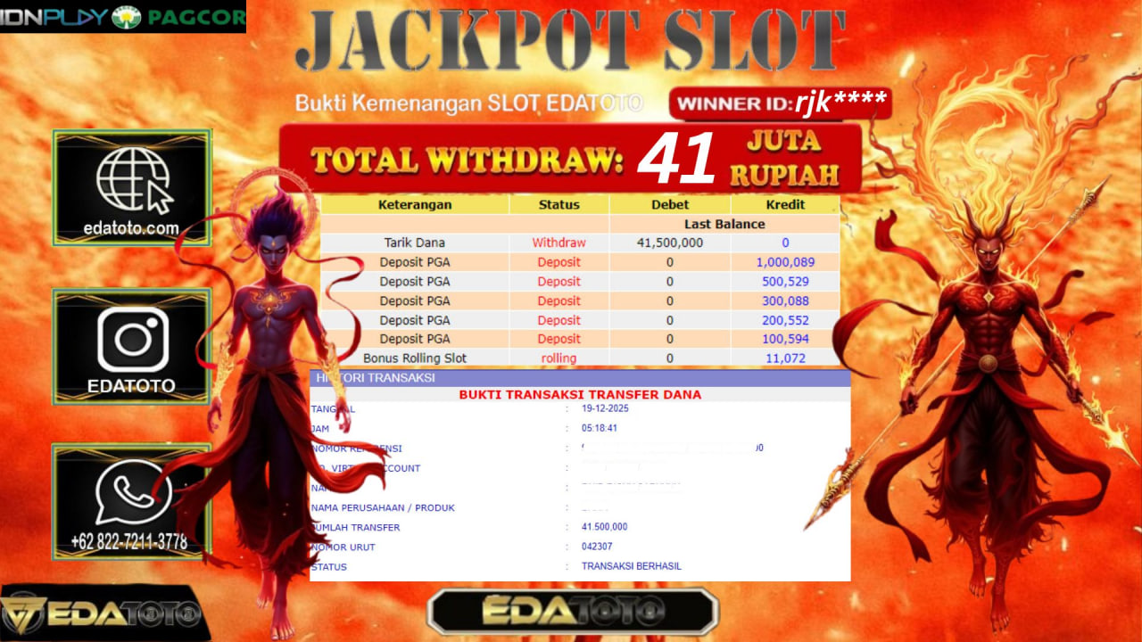 Selamat Kepada Pemilik user ID : rjk**** Hari/Tanggal :kamis/ 18, Desember 2025 Jackpot : Rp. 41,500,000 JT Withdraw : 41,500,000 . . .
