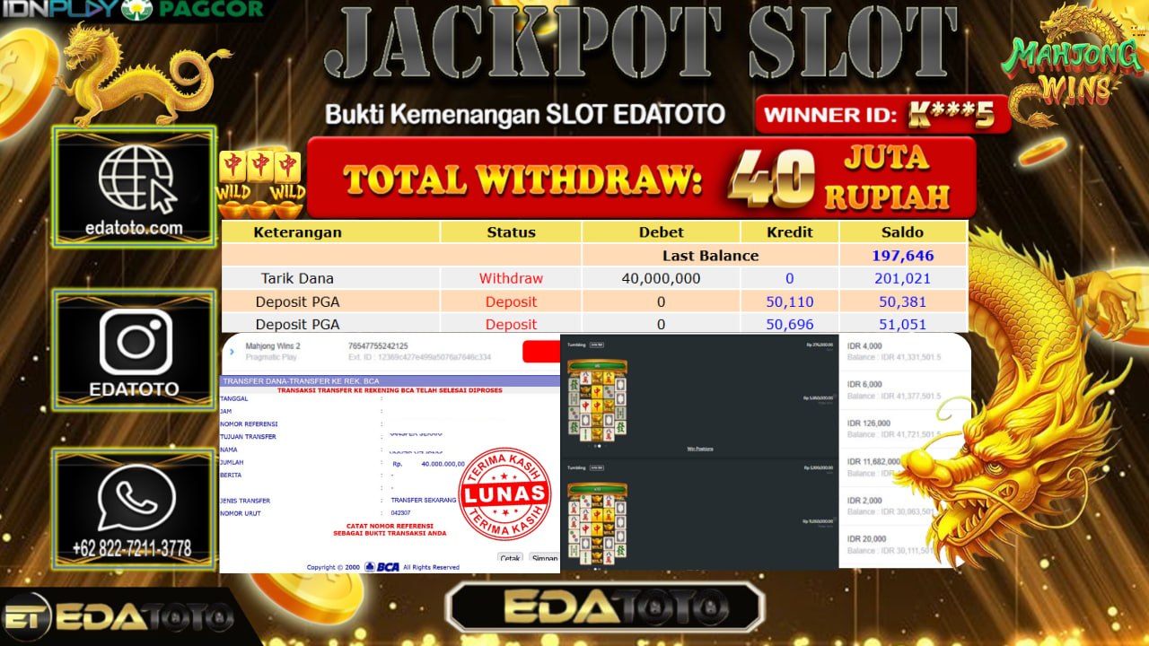 Selamat Kepada Pemilik user ID : martoli**654 Hari/Tanggal : Selasa / 24 MARET 2026 Jackpot : Rp, 40,000,000 JT Withdraw . . .