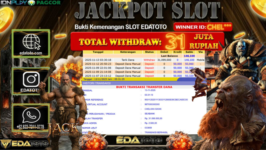 Selamat kepada member setia EDATOTO telah mendapatkan JP Bermain Di : Jack The Giant Hunter