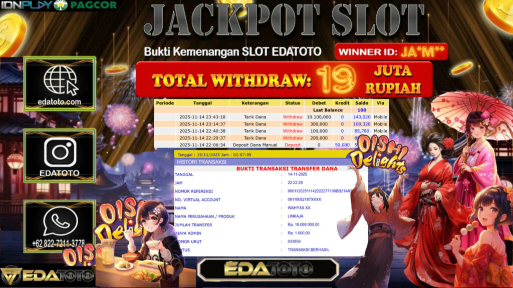 Selamat kepada member setia EDATOTO telah mendapatkan JP Bermain Di : Oishi Delights
